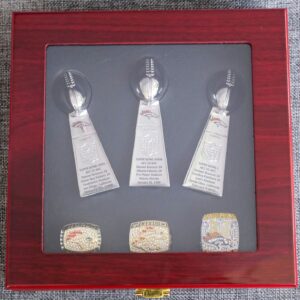 [DENVER BRONCOS ]3 Trophys and 3 Pcs Ring Set + Box NFL