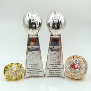 [ Tampa Bay Buccaneers ]2 Trophys and 2 Pcs Ring Set + Box NFL
