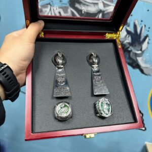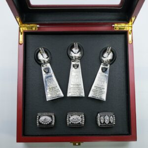 [ OAKLAND RAIDERS]Set 3 Trophys and 3 Pcs Rings Championship Super Bowl + Box NFL
