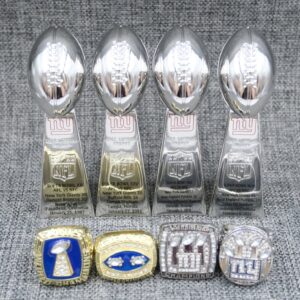 [ NEW YORK GIANTS]4 Trophys and 4 Pcs Ring Set + Box NFL