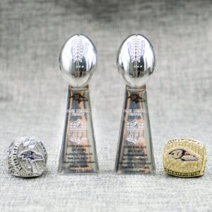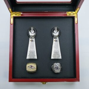 [ Baltimore Ravens ]2 Trophys and 2 Pcs Ring Set + Box NFL