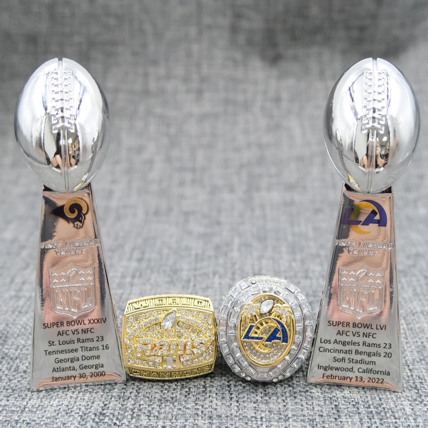 [ Los Angeles Rams ]2 Trophys and 2 Pcs Ring Set + Box NFL