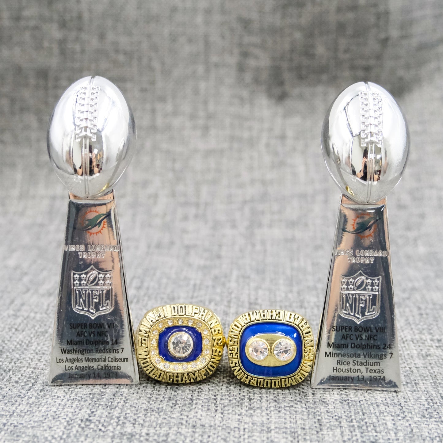 [Miami Dolphins]1972 1973 Super Bowl Championship Rings Trophy Set